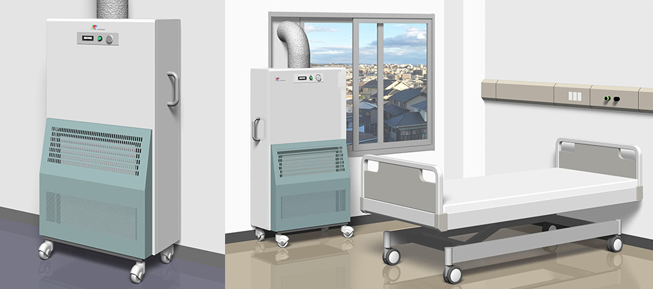 ● 室内を陰圧にし、排気はHEPAフィルターで清浄化して外部に放出します