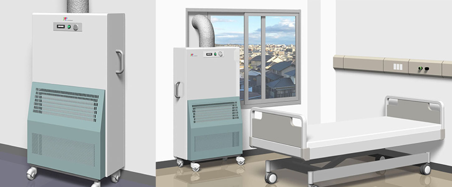 ● 室内を陰圧にし、排気はHEPAフィルターで清浄化して外部に放出します